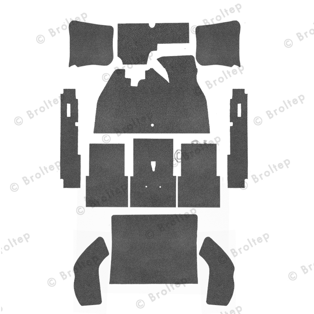Innenraum- und Stauraumteppich 12-tlg. passend für Vw Käfer 1300/1500 mit Beifahrerfußstütze Bj. 65 – 72